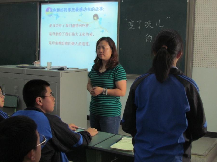 陈老师以一些同学小时候与妈妈的合影开场,让学生回忆当时的自己和妈妈的关系怎么样,再通过自编短剧谈现在自己和妈妈有哪些矛盾,引发学生思考。然后用一段反映母爱的视频来让学生更直观地理解母爱的伟大,思考如何处理与母亲的关系,最后鼓励学生大胆向妈妈说出自己的心里话。整个课堂衔接紧凑,层层递进,学生情感激发自然,让观课老师们耳目一新。