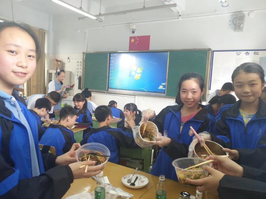 由七年级班主任带领各班学生在本班教室进行活动。在活动现场,可以看出各班活动的前期准备十分充足。此次劳动与技术检测内容较为丰富,可以制作笔筒,可以插花,也可以做凉拌菜。同学们根据自己的兴趣爱好,准备好了制作原料。插花的同学带来了各色娇艳欲滴的花朵、剪刀和花瓶,以及装饰花朵的彩带;制作笔筒的同学准备了制作笔筒的纸盒、塑料桶、彩色装饰物等,以及在笔筒上自己绘画;做凉拌菜的同学从家里带来了蔬菜、调料,动手做起了好吃的凉拌三丝,有些同学的确做得色香味俱全。