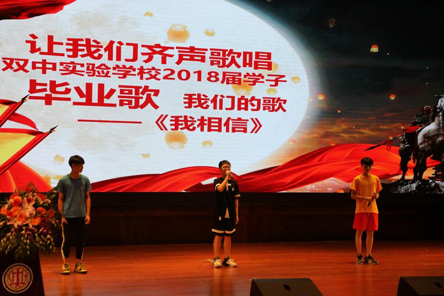 6月11上午9点,双流中学实验学校2018届初三学生毕业典礼在学校国际部多功能厅如期举行。这是个特别的日子,天上下着小雨,空气中弥漫着淡淡的离愁,在双中实验奋斗了三年的学子将从这里起帆远航,带着母校的嘱托与祝福,踏上新的征程。