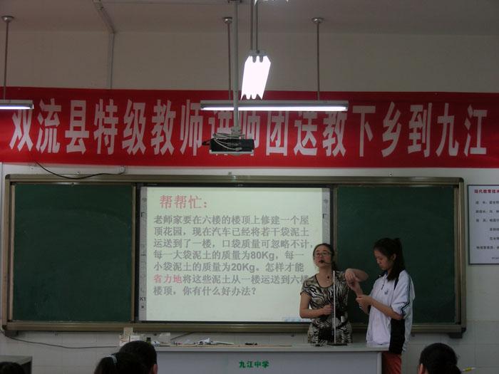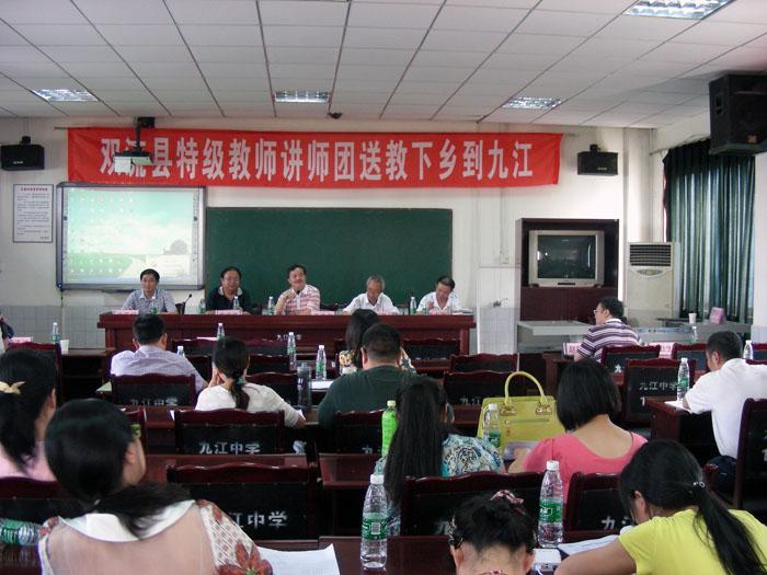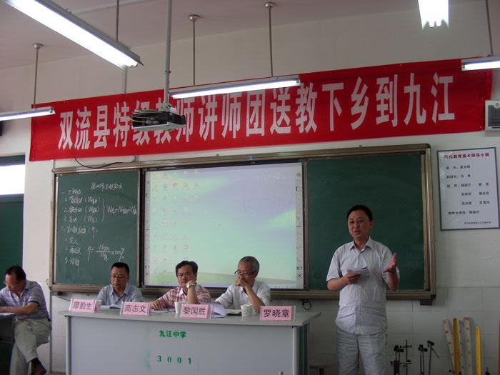 2014年5月29日,我校校长、讲师团团长高志文先生,文传福、杨红主任和罗晓章、李征、罗远均老师随“双流县特级教师讲师团”送教下乡到九江初中。