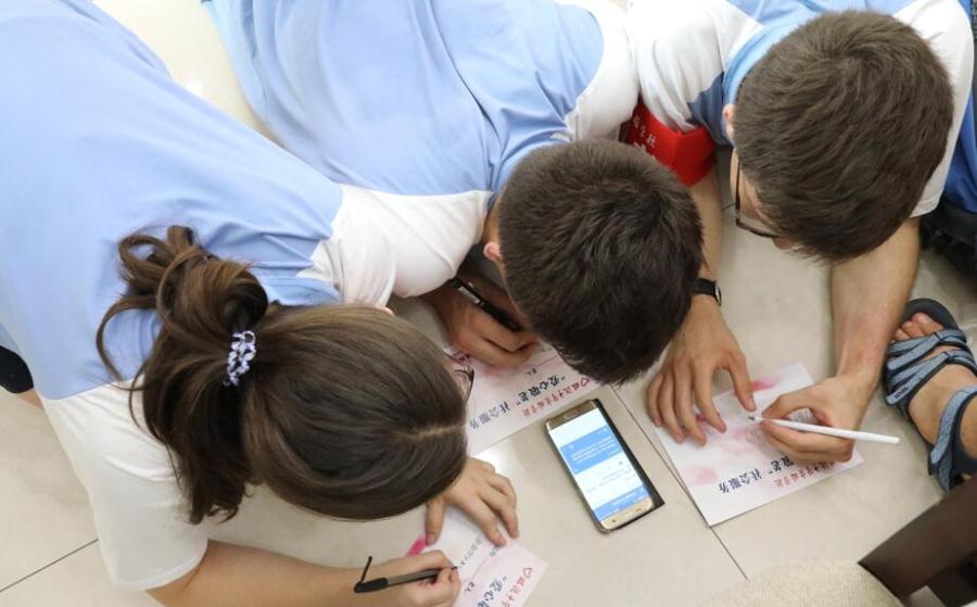 快乐的时光总是短暂的,当我们不得不离开华孝颐养局返校时,全体美国学生为老人们赠送心意贺卡,用中文写下祝福老人的话语,表达自己对老人们的深深祝福。