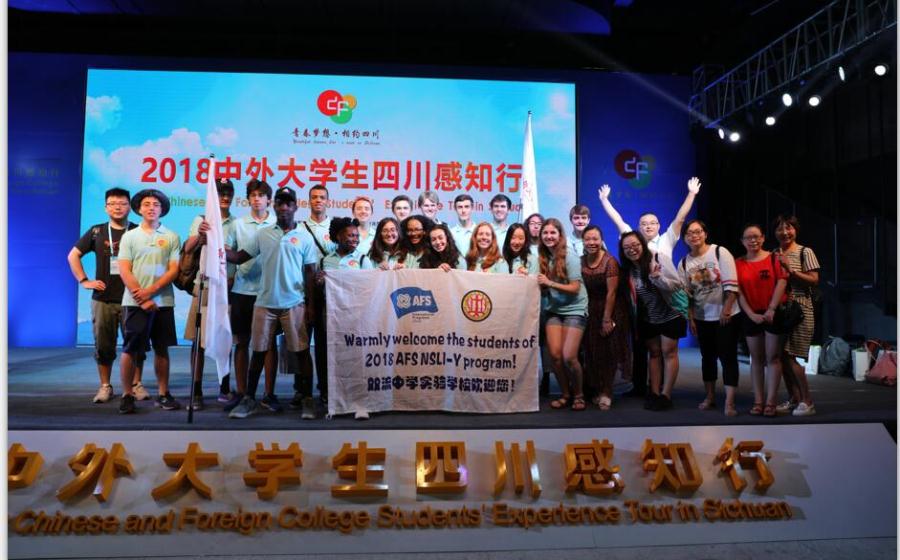 7月24日上午,29名美国小哥哥小姐姐们来到成都西村文化创意产业园参加以“青春梦想·相约四川”为主题的“2018中外大学生四川感知行”活动的启动仪式。在这里他们和另外300多名中外大学生代表一起,更深层次地了解成都这个被称作“一个来了就不想走的城市”,从悠久历史到川味美食,成都以其时尚的休闲品味、历史文化与商业交融的独特氛围,吸引住了大家的目光。启动仪式上,省、市领导纷纷向学生代表们表示热烈欢迎,并希望更多地了解四川,了解成都,能碰撞出更多的火花。启动仪式后,成都电视台、成都商报等新闻媒体,争相采访了我们的小哥哥小姐姐们。