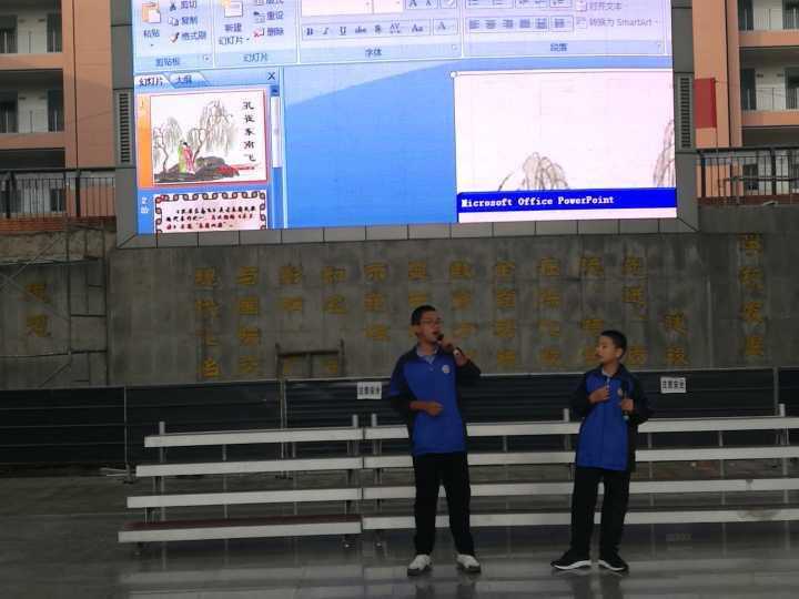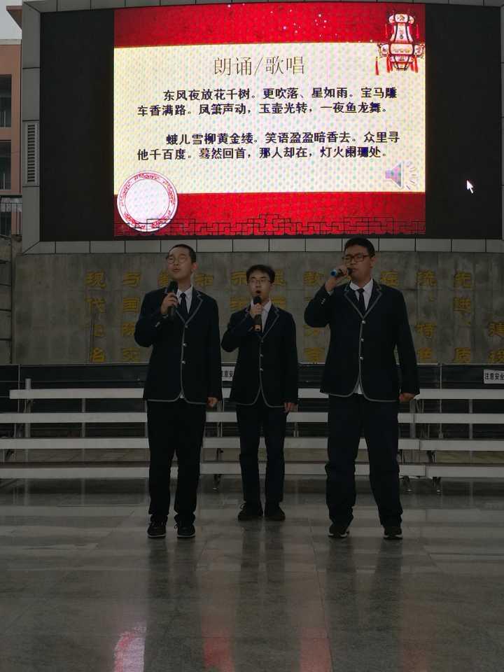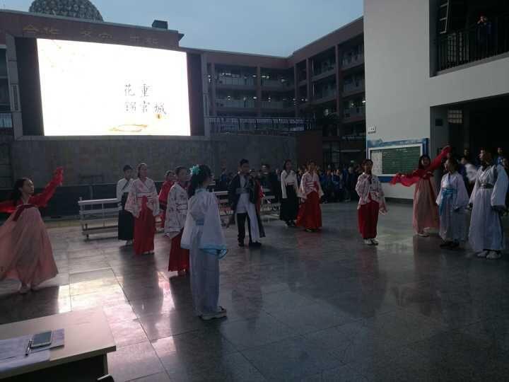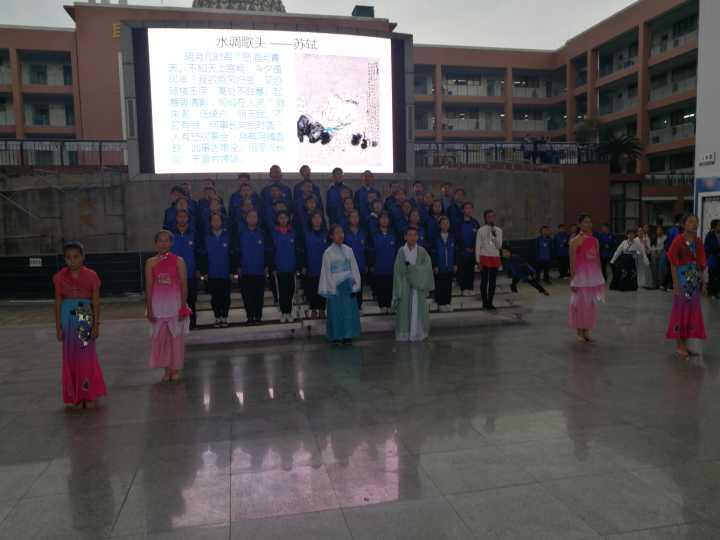 在最后的彩排过程中,评委们和围观的师生们一次次地为那些精心准备的节目而感动着,陶醉着。如七年级带来的《孔雀东南飞》《水调歌头》《花重锦官城》《苔》,八年级带来的《使至塞上》以及男生独唱《消愁》等。尽管是彩排,依然赢得了在场师生热烈的掌声。