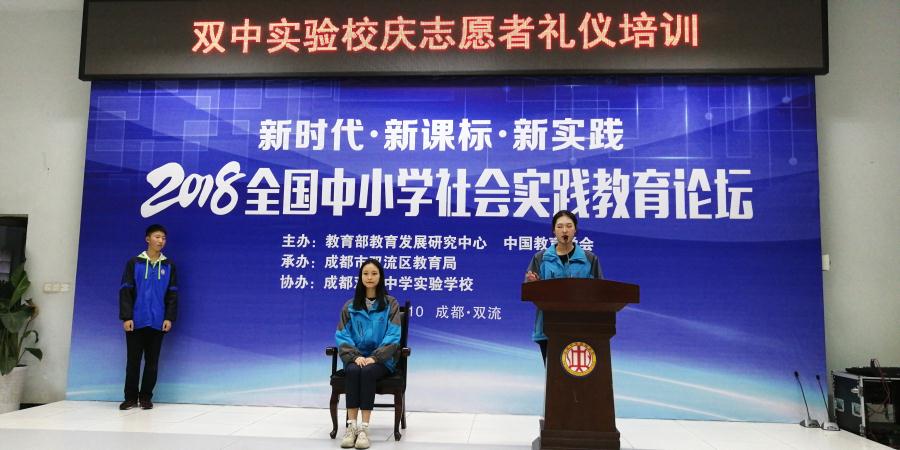 我校即将迎来建校十五周年校庆,为了更好地为参加校庆活动的领导、家长和校友做好服务工作,18日晚,学校德育处邀请两个优秀的校友——现成都电子信息学校礼仪队队长和副队长对我校210名校庆志愿者进行了礼仪培训。这210名自愿者来均是来自八年级各班的优秀同学,他们将在校庆当天代表学校喜迎八方来客,因此,对他们进行礼仪培训就尤为重要。
