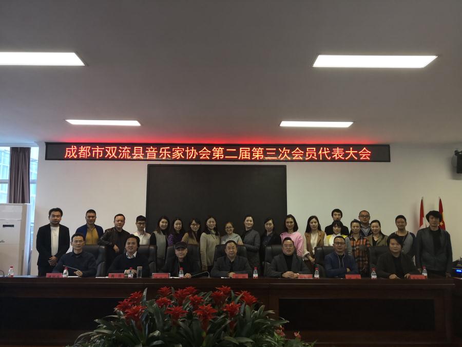 2018年10月26日,双流音乐家协会第二届第三次会员代表大会在艺体校多功能会议室举行。参会的人员有市(区)音乐家协会领导、区文联副主席以及双流音乐界会员代表。我校夏栋梁、吴玲两位老师分别以副秘书长、理事身份受邀参会。