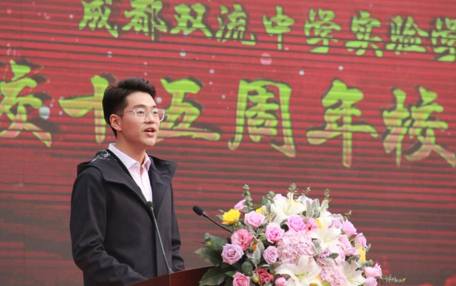 四川省教育厅副厅长崔昌宏在典礼活动上讲话,他表示双流中学实验学校建校十五年来始终秉持“人本化、规范化、创新化、现代化”的办学理念,围绕“促进学生全面协调发展,充分发展学生个性特长,培养学生健全人格”的育人目标,深入推进基础教育课程改革,提升学校办学质量和水平,成为我省民办中小学改革发展的排头兵。并对学校提出三点希望:一是为学生成长成才打好基础;二是为学校特色发展积累经验;三是办好人民满意教育提供示范。并寄语同学们要胸怀大志、勤奋好学,要勇于实践、敢于创新,要德高品优、全面发展。