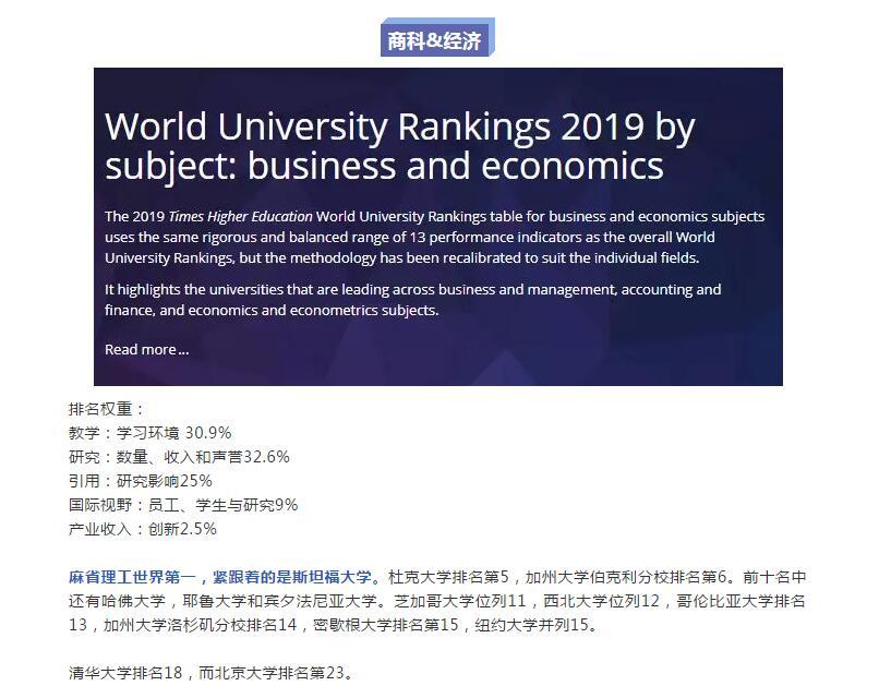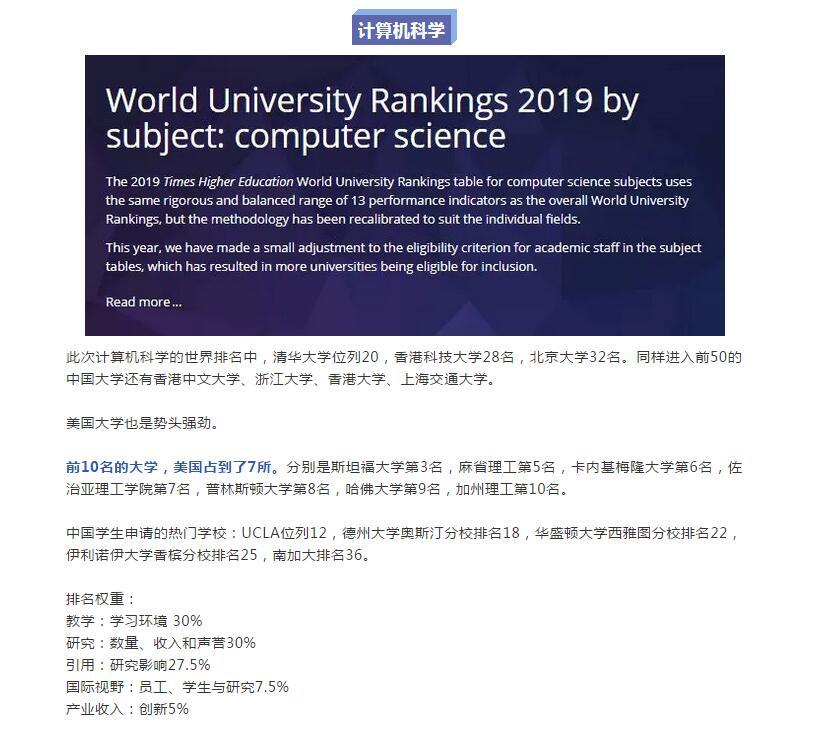 升学|泰晤士2019世界大学【学科】排名:计算机、商科、工科…谁第一?