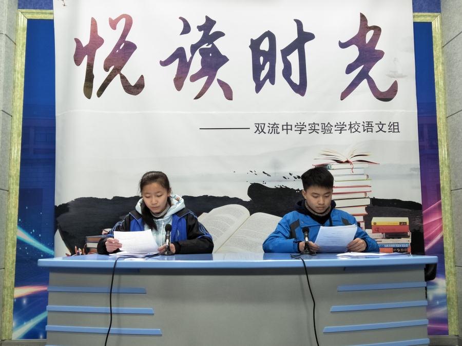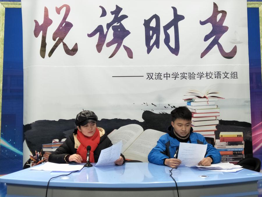 2019年1月3日中午14:00,在轻缓的音乐声中,双流中学实验学校校园文学广播“悦读时光”最后一期顺利播报!本期主题为“新的一年,新的期望”,本期主播是九年级语文备课组罗金莉老师和九年级5班学生车培蔚、杨袁仪同学。