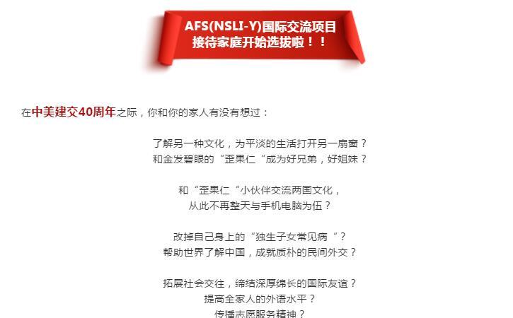 AFS(NSLI-Y)国际交流项目 接待家庭开始选拔啦!!