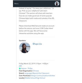 Teaching) , 并在大会上向来自各个州的语言教师作了题为“关于手机应用在课堂教学中的使用”的主题发言。刘老师此前已于2018年被