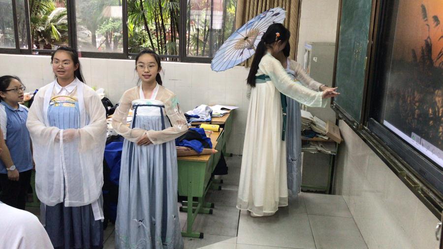 在展演过程中,我们感受到同学们声情并茂地朗诵,对经典的诠释。我们也看到了同学们意气风发,挥斥方遒,身着汉服,舞姿优雅;更聆听到同学们高亢嘹亮的音乐旋律。