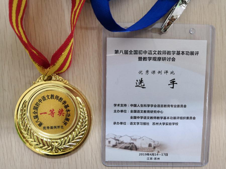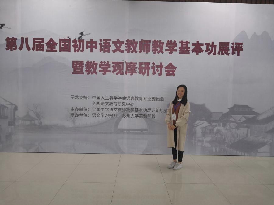 第八届全国初中语文教师教学基本功展评活动于2018年4月14日至19日在有“人间天堂”美誉的江苏苏州举行。我校青年语文教师杨菲作为四川省初中语文教师代表参加本次展评活动,与来自全国28个省、直辖市、自治区的各位精英选手展开角逐,杨老师凭借其扎实的语文功底及其精彩的课堂展示,勇夺大赛一等奖。