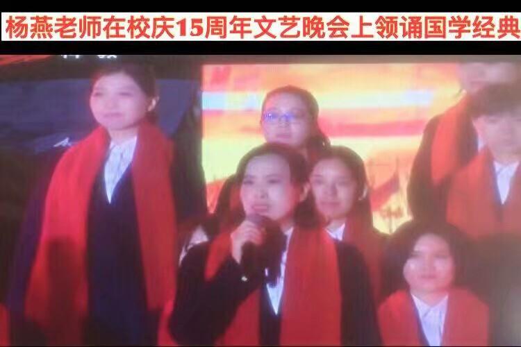杨燕老师热爱教学喜欢朗读,从教以来多次获得朗诵演讲方面各种奖项。她在平时教学中经常给学生进行朗读示范,诵读指导,演讲排练。她与学生一起在人学校文艺术节展示她们解读的“为你读诗”,她带着学生为校园广播“悦读时光”做开播主持人;她曾在双流区教育局主办的“铭党性 铸师魂”国学朗诵比赛中,担任学校朗诵团队领诵,该节目获得全区特等奖;也曾在学校每年阅读活动中多次策划组织校园阅读活动;还曾在双中实验十五周年“风华正茂”庆典晚会上担任领诵。杨燕老师此次获奖跟她多年来的实践和积累分不开。相信在双中实验这个平台上,杨老师的朗读一定会有更长足的进步。