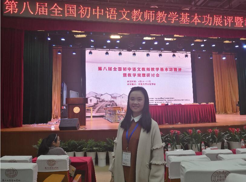 第八届全国初中语文教师教学基本功展评活动于2019年4月14日至19日在江苏省苏州市举行。我校青年语文教师杨菲作为四川省初中语文教师代表参加本次展评活动,与来自全国28个省、直辖市、自治区的80余名精英选手展开角逐,杨老师凭借其扎实的语文功底及其精彩的课堂展示,勇夺大赛一等奖。