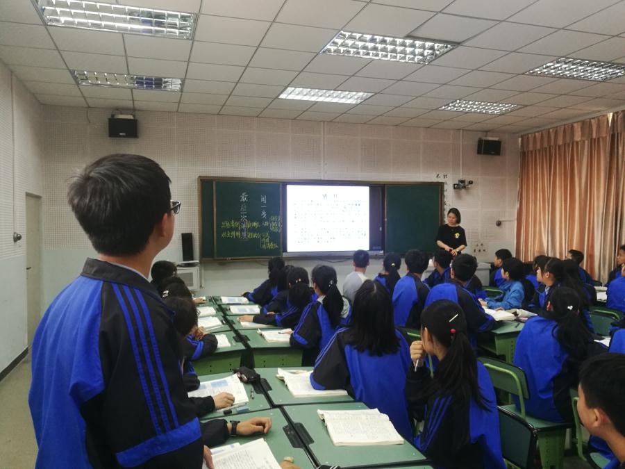 3、课后评课环节,本堂课得到了评委老师的高度赞扬:“这堂课可以打到满分,既落实知识点,又活动充分,更明显感受到学生真正的投入,让听课老师都很认真在听”;“最后闻一多牺牲资料的补充,学生很有感触,为后面的起立齐诵做足了情感铺垫,是整堂课最大的亮点”;“从学生朗读素养可以看出谢娟老师功夫在平时,平时课堂注重对学生朗读能力的训练”;“谢娟老师很注重探究与活动的契合,且这种契合不仅在本堂课上体现,甚至还延伸到课下的读书活动,非常好”······ (语文组)