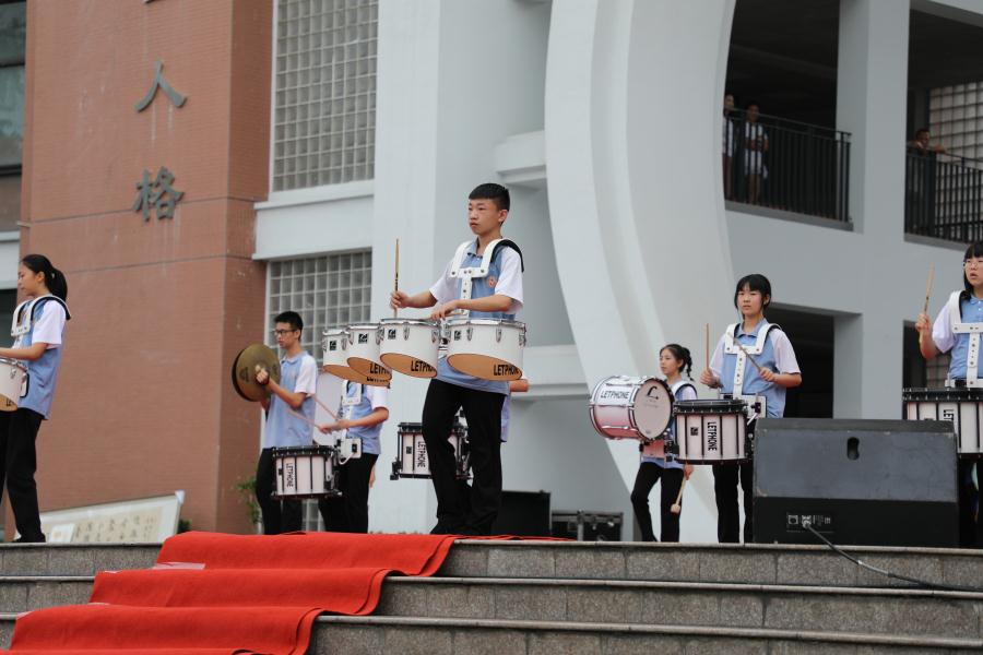 铿锵有力的打击乐响起,八年级的同学们为即将走上中考考场的学长学姐们加油鼓劲!