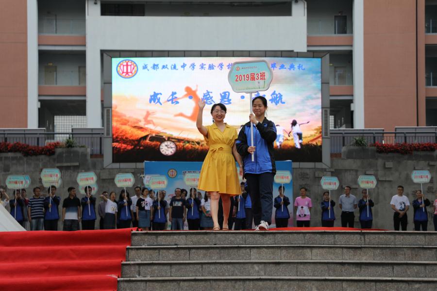教师代表杨燕老师深情地回顾了同学们三年成长中的难忘瞬间,她说:“我们希望三年后,双中实验的精彩在你身上呈现!我们更希望三十年后,你若归来,仍然是双中实验的追梦少年!”