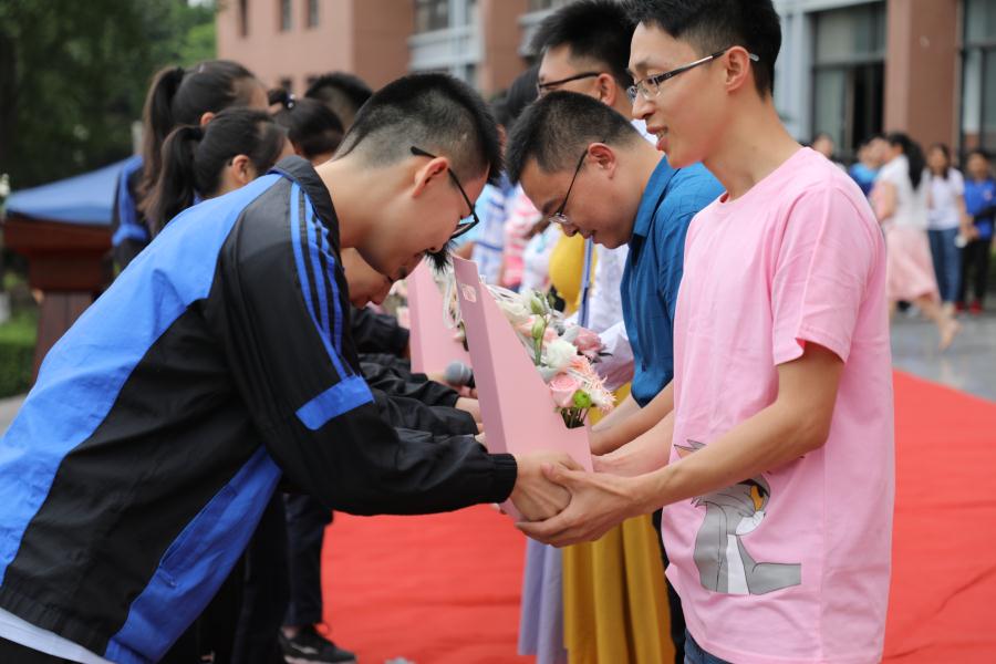 三年成长,对同学们而言,老师似灯塔指引前行的路。同学们把饱含感激和祝福的花朵献给老师们,说一声“老师,您辛苦了!”