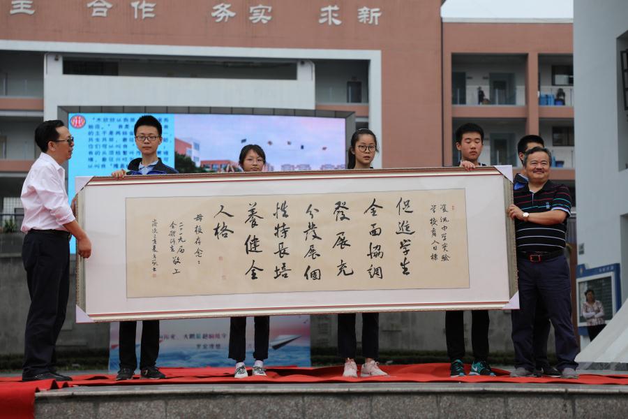 双中实验是一颗大树,让远游的学子尽管相隔千里万里也会回首凝望。行政办副主任、九年级组长孙久木老师代表2019届全体师生向学校赠送一棵桂花树作为纪念。