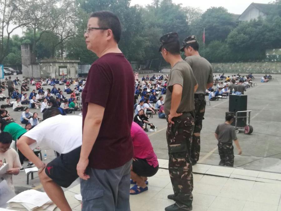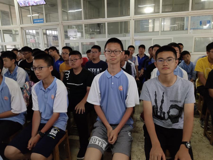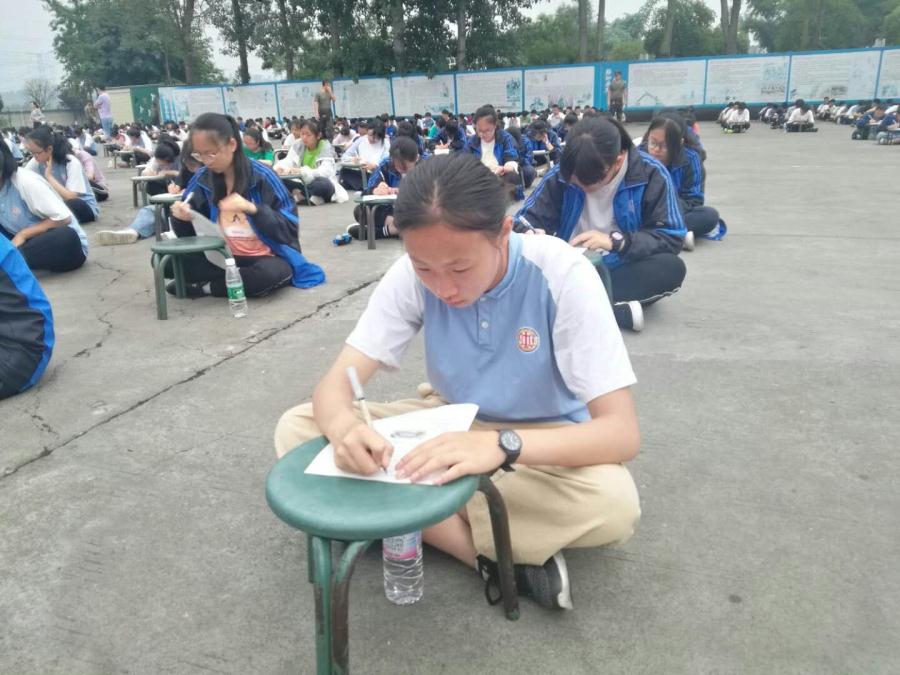 2019年6月14日星期五,早上6:30全体八年级学生在教官和班主任的组织下,席地而坐,进行了一场“别开生面”的生物学科测试。测试过程秩序井然,严肃安静。