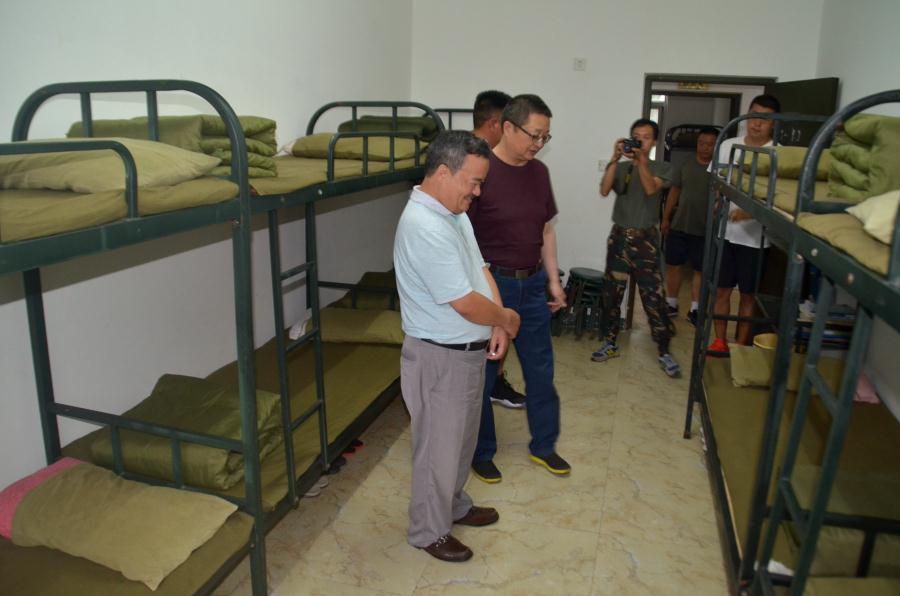 晚上六点半,高志文校长、罗晓章校助、杨红主任、文传福主任、陈国华主任以及七年级教师代表前来慰问基地师生。高校长以及其他学校领导、慰问团老师在邓光伟主任的陪同下,亲自观看了学生的就餐过程,参观了干净整洁的学生寝室。高校长以及慰问团老师们亲切的问候、鼓励的话语、温暖的笑容,让基地师生如一阵阵暖流流过心间。高校长鼓励大家,基地生活或许艰苦,但通过此次素质拓展活动,学生的综合实践能力能得到极大提高,学生的精神意志能得到更大程度的磨练。所以,这次素质拓展活动再苦再累,都是值得的!同学们更是振奋精神,认真训练,期望明天能有一个完美的汇报演出,为双中实验增光!