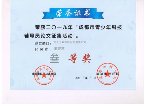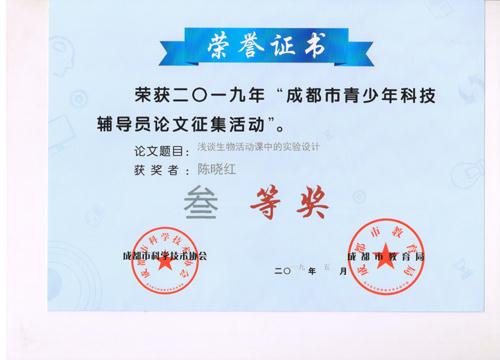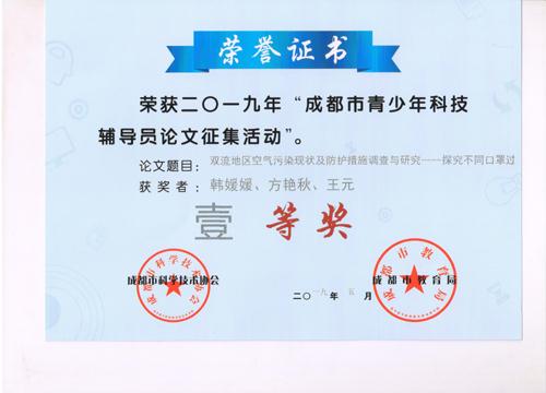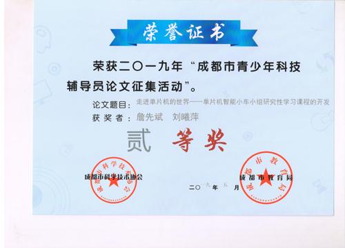 在2019年5月由成都市科协和成都市教育局联合举行的成都市科技辅导员论文比赛中,我校提交的五件作品均获奖,体现了我校科技辅导员较高的科技教育理论水平。获奖情况如下: