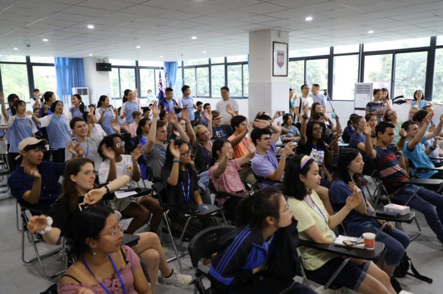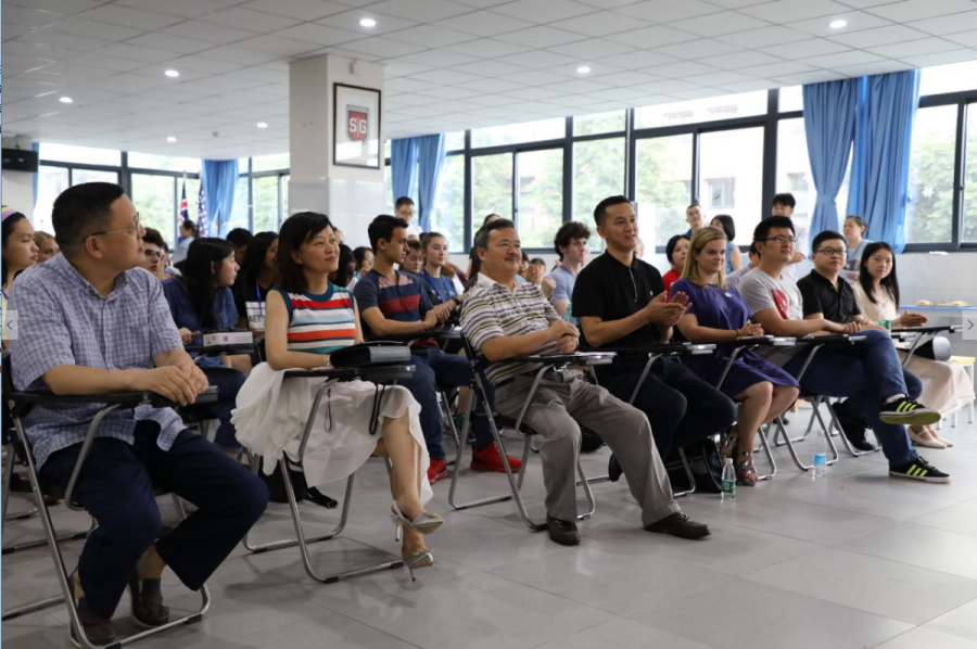 我校的32个寄宿家庭用不同的方式迎接了32位美国学生的到来,并为此准备了各种“小惊喜”。在表演环节,我校学生们表演的古典舞、竹笛演奏,打开了美国学生对中国传统音乐文化的认识。一曲《成都》让美国学生在悠扬的歌声中,了解到独具魅力的成都文化。 接待家庭代表也上台表达了自己对到来的家庭成员的欢迎,并表示“我会带美国朋友走进具有浓郁成都风情的地方,让他们深入感受四川文化。”她希望通过这次的暑期项目,为彼此留下深刻的回忆。美国学生代表也上台表达了对学校及接待家庭的感谢,并对自己接下来40天的学习充满了期待。