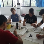 3. 7月9日、11日学生上文化体验课程--国画熊猫;剪纸。