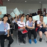 1. 7月8日,由七年级选拔出的15名语言伙伴正式到位,进入教室前,由我校国际理解教育课题组陈幸老师对他们进行培训,并指导他们正确使用及填写由国际理解教育课题组开发的语言伙伴手册。