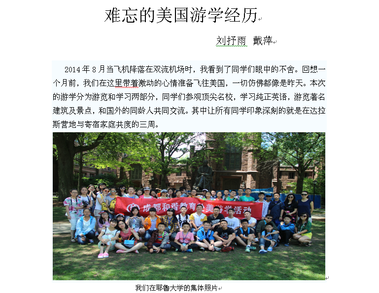2014刘抒雨老师美国游学体验