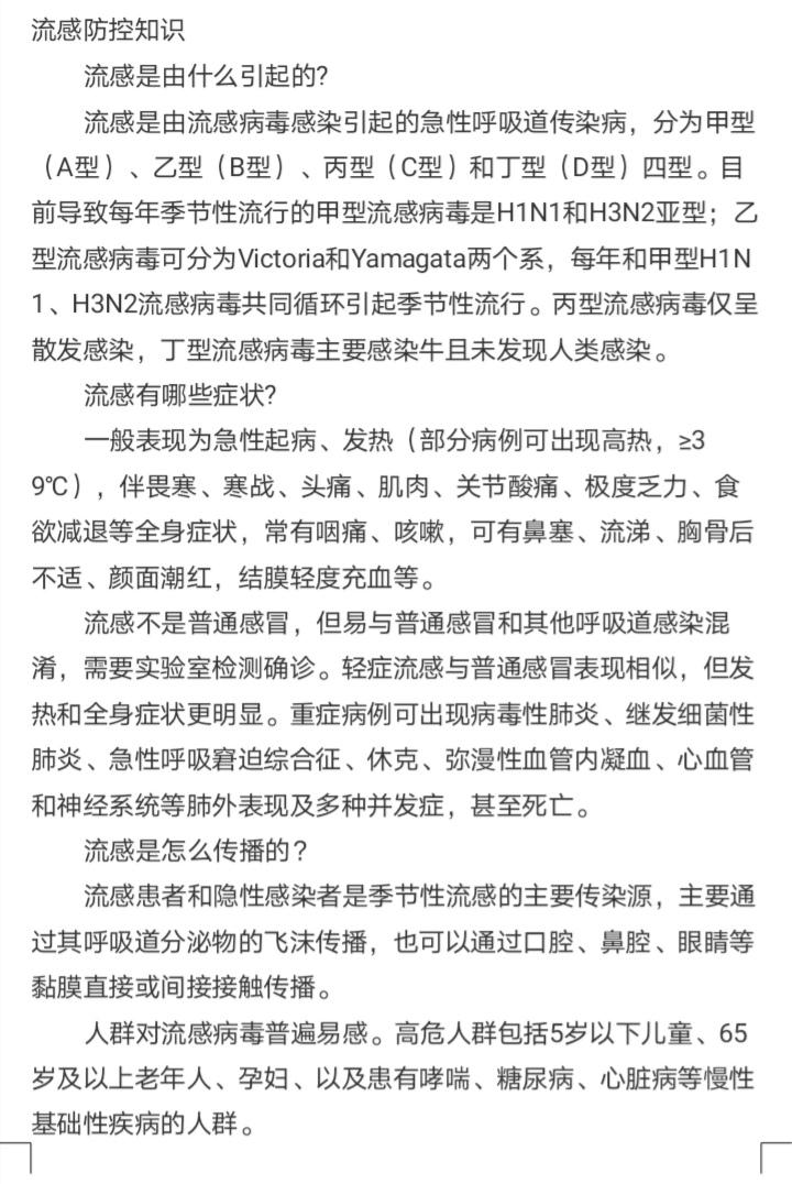 “安全小知识”——流感防控常识