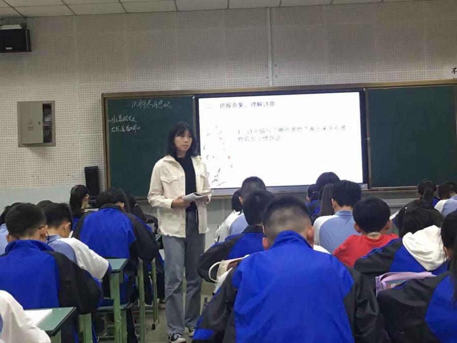 首先,付丽莎老师带来一堂名为《初探古代诗人的隐逸情怀》的群文阅读课。付老师拥有一颗匠心,她化繁为简,以简驭繁,从众多隐逸诗中精心选择了《渭川田家》《饮酒 其五》和《山园小梅 其一》这三首。她引导学生聚焦意象,异中求同;联系背景,同中辨异。付老师拥有一颗慧心,在课堂上,她善于捕捉学生的回答中稍纵即逝的闪光点,运用机智的方法,让学生的思维过程得到尽情的暴露,带领学生在文本中自由地穿行,感受诗人的隐逸情怀。付老师将诵读贯穿于整堂课,引导学生抓住相关意象,进行深入品读,适时补充背景资料,帮助学生运用“知人论世”的方法理解诗人的情怀。付老师这堂课环节清晰,层层推进,课堂气氛十分活跃。