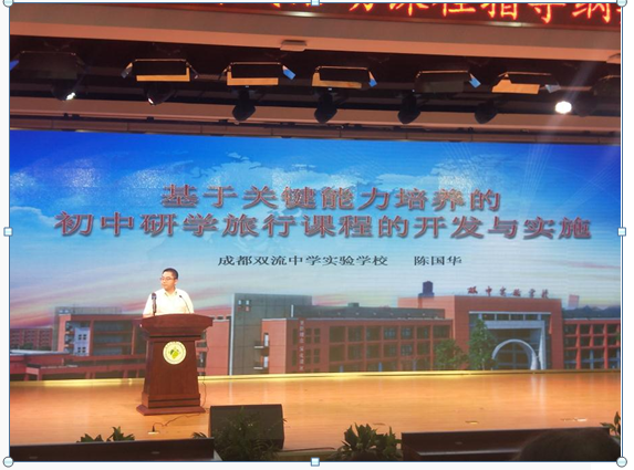 会上我校陈国华主任作了题为“基于关键能力培养的初中研学旅行课程的开发与实施”的专题发言,细致而全面地介绍了我校自建校以来如何校本化开发并实施省内、省外及境外的研学旅行课程,获得在场几百名参会教师的一致好评