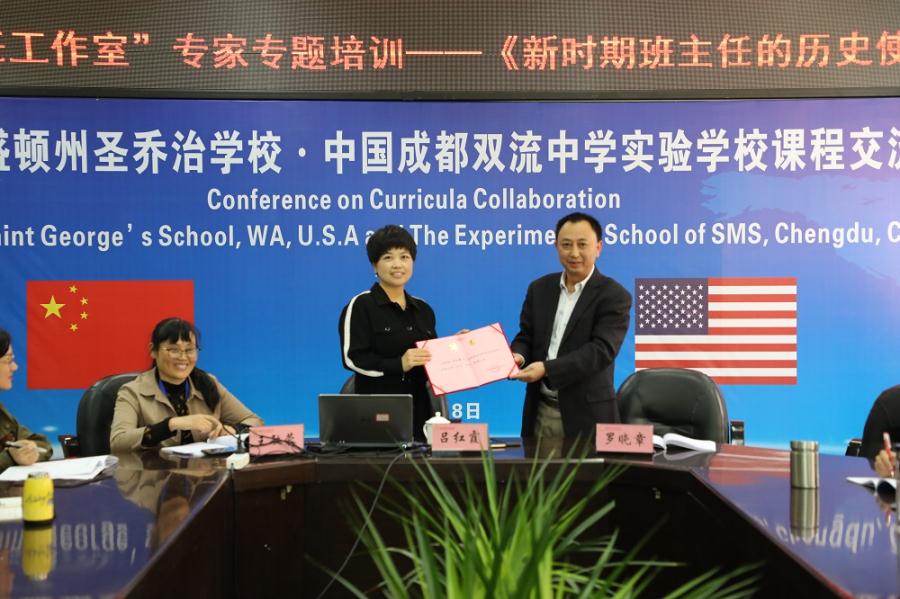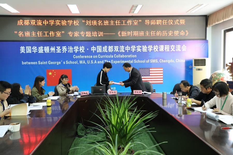 专题培训前,校长助理罗晓章、德育处主任王敏蓉主持了隆重的聘任仪式,特聘吕红霞老师为我校刘瑛名班主任工作室导师,并颁发聘书。