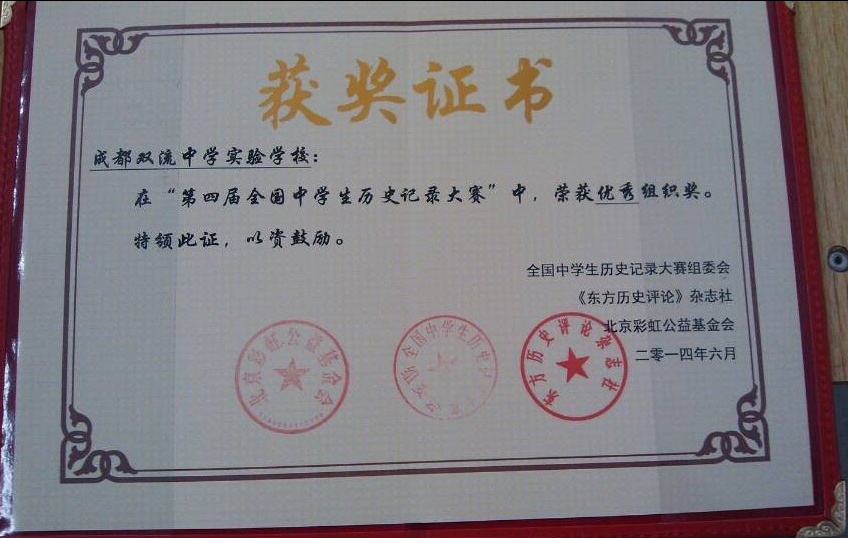 我校学生黄林邻熹作品《奶奶的求学路》参加全国中学生历史记录大赛获全国三等奖!在历史组王小玲老师的悉心指导下,我校学生多件作品参加了本次大赛,经过初选、分赛区决赛、总决赛等重重比拼,黄邻熹同学的作品在全国上万件作品中脱颖而出,喜获三等奖,全国仅有80名选手入围,四川省仅一名选手获奖。由于我校在组织学生参赛方面表现出的积极性,组委会特授予我校优秀组织奖,王小玲老师被评为优秀指导教师,特此祝贺!