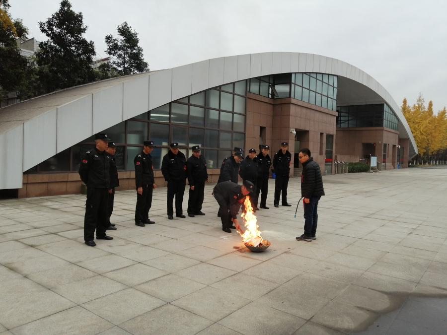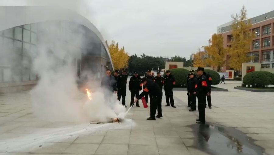 为进一步提高保安人员消防技能,保障校园安全,2019年12月2日上午8点10分,双流中学实验学校初中部全体保安在校前广场进行一次消防灭火演练。