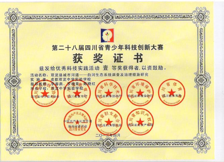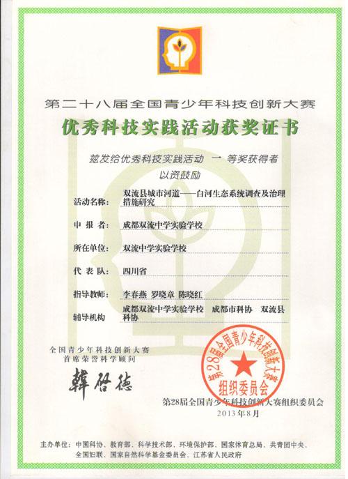 我校学生小组研究性学习课题、优秀科技实践活动《双流县城市河道——
