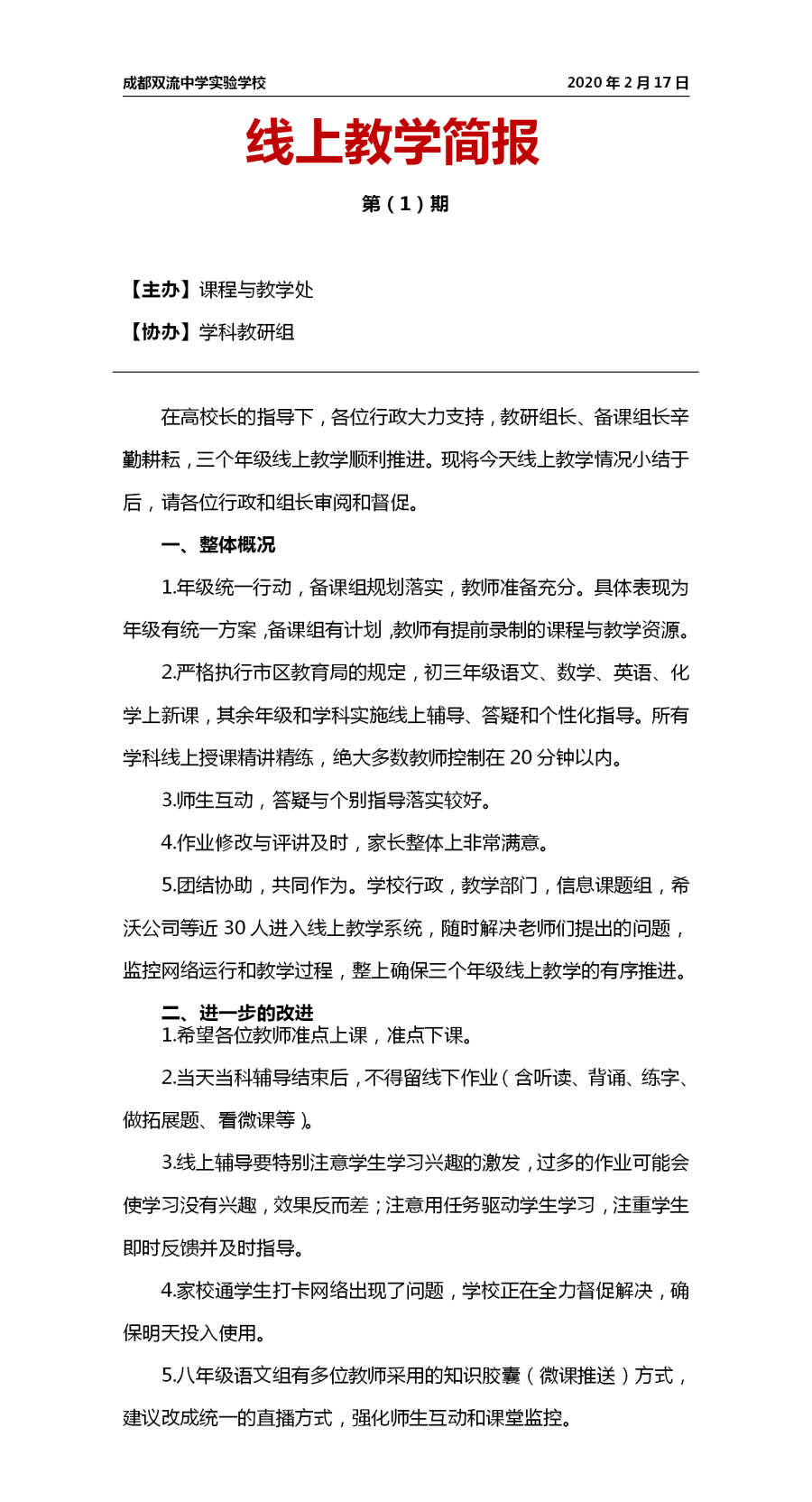 线上教学简报第(1)期