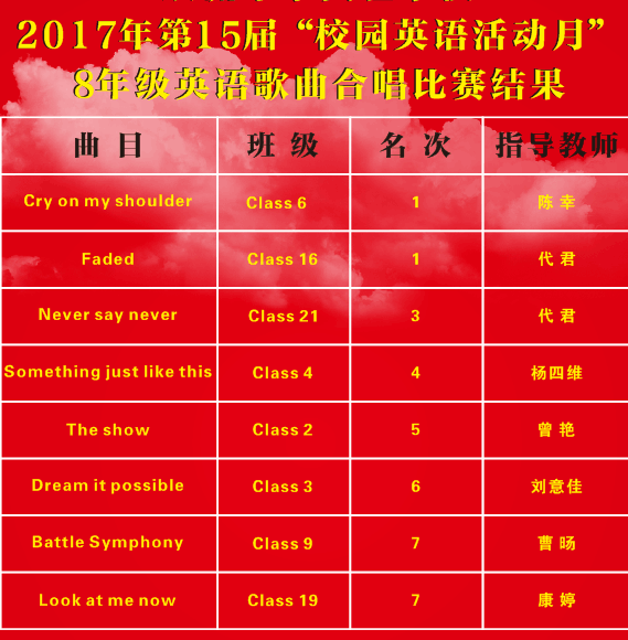 2017第15届“校园英语文化活动月班级合唱大比拼”