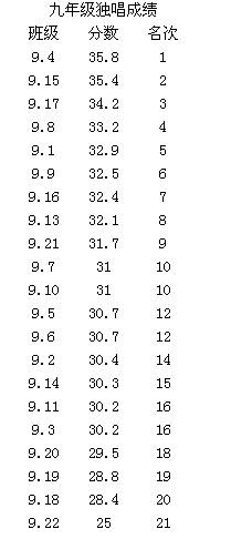 2017 英语文化活动月7、8、9年级英文歌曲演唱成绩单
