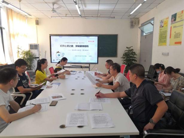 会议由罗远洋老师主持;首先进行的是生物组王丽君老师的《打开心灵之窗,探秘眼球结构》。王老师从教材、教法、学法三个方面对本堂课进行详细讲解。通过小组合作探究教学的方式,让同学们围绕中心问题各抒己见,并通过师生交流和学生交流,相互探讨,让学生对生命现象引起关注,树立生命观念,珍惜眼睛、保护眼睛的意识。再结合人格特征,讲述了本次课重点渗透的要素为“生命与生活、存在与规律”接着生物组组长陈晓红老师对王老师的这堂课的上课、听课、集体磨课进行了分享;最后生物组张淼玲老师从课堂观察的情况进行了说明。