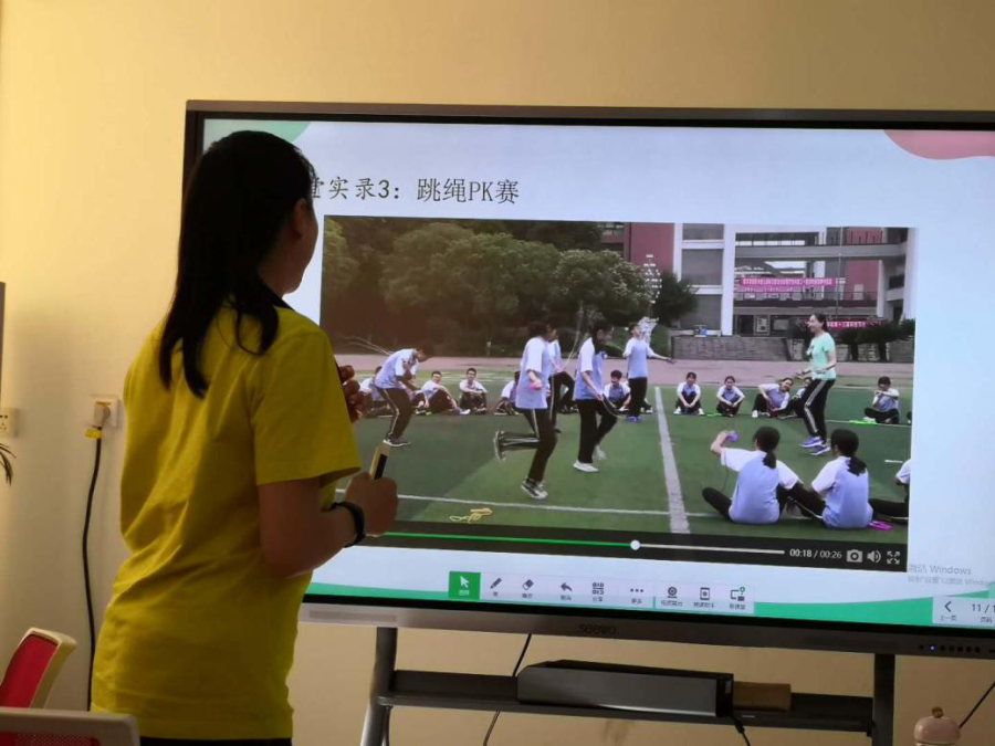 体育组万翠英老师献课的课题是《一根绳的旅行》。本次课以一根跳绳为主,全面提高学生的跳跃能力。万老师从课前的准备、课中环节的处理、课后反思三个方面以及如何全面渗透“人际交往、意志品质”进行了讲解;接着 彭胜杰组长对万老师这堂课是如何磨课、怎样确定渗透的人格要素和课后反思总结方面做了分享;最后王华老师分享了课堂观察情况。
