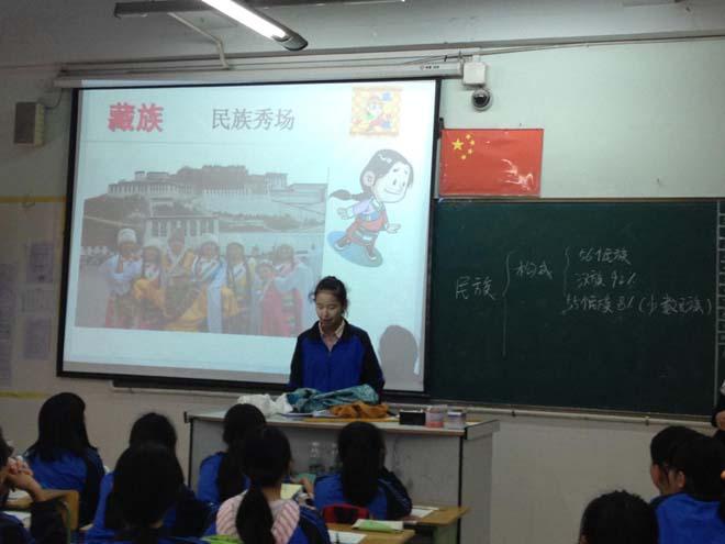 地理组刘英老师于上周六第四节课在八年级4班“人人献课”活动中献课《民族》。