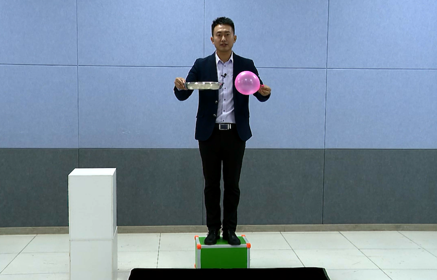 市级总决赛包括30分钟理论考试、随机抽取一个教学设计进行15分钟现场课堂教学、5分钟现场答辩三个环节。分成理、化、生和音、体、美两个组进行。夏栋梁老师的课堂感染力极高,教学环节的把控、专业技能的展示、拓展互动的设计让整节课氛围浓郁,教学过程中评审组专家甚至多次响起掌声给予肯定。何铁老师抽到的课题是《大气压强》,15分钟的教学从空气压扁矿泉水桶引入课题,学生自主设计体验大气压强的存在形成物理观念,设计并改进实验测量大气培养科学思维,从人类认识大气压强的历史沿革到新冠疫情人类利用负压病房阻碍病毒扩散,培养科学态度与责任。带有浓郁双流中学实验学校的课堂特征的设计,赢得了评委的高度赞誉。