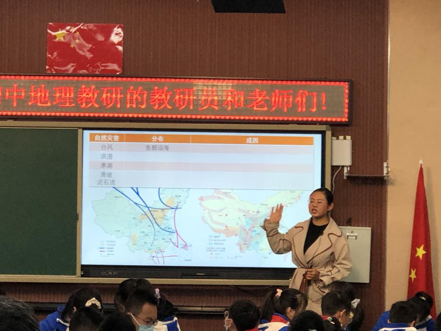 下午2点,由七中高新叶熊焰老师执教的《中国的自然灾害》一课拉开了本次会议,该课从四川洪水情境导入,通过探究活动游学方案为主线,在培养学生的地理核心素养上有所突破。叶老师语言流畅,抑扬顿挫,节奏性强,板书有条理,规范漂亮,字迹工整,科学规范,重点突出。