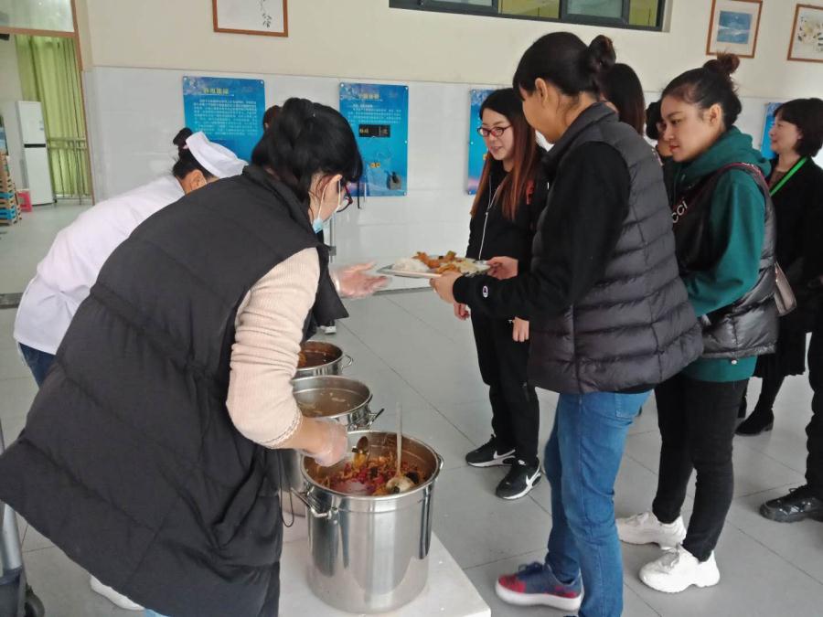三、初中部家长代表走进学校食堂体验就餐。