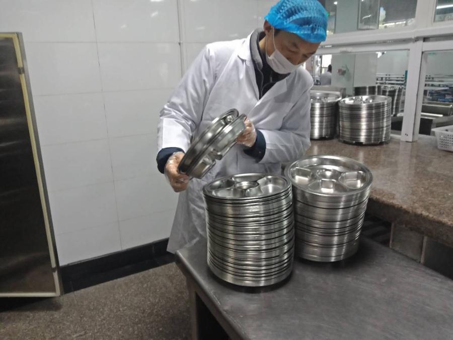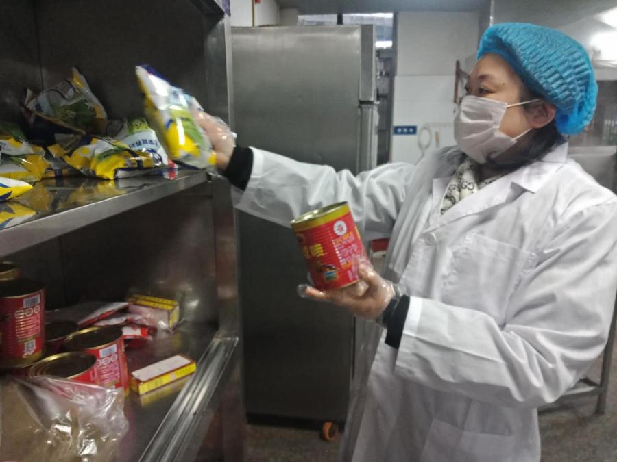 七、学校后勤肖静老师在食堂进行日常检查。