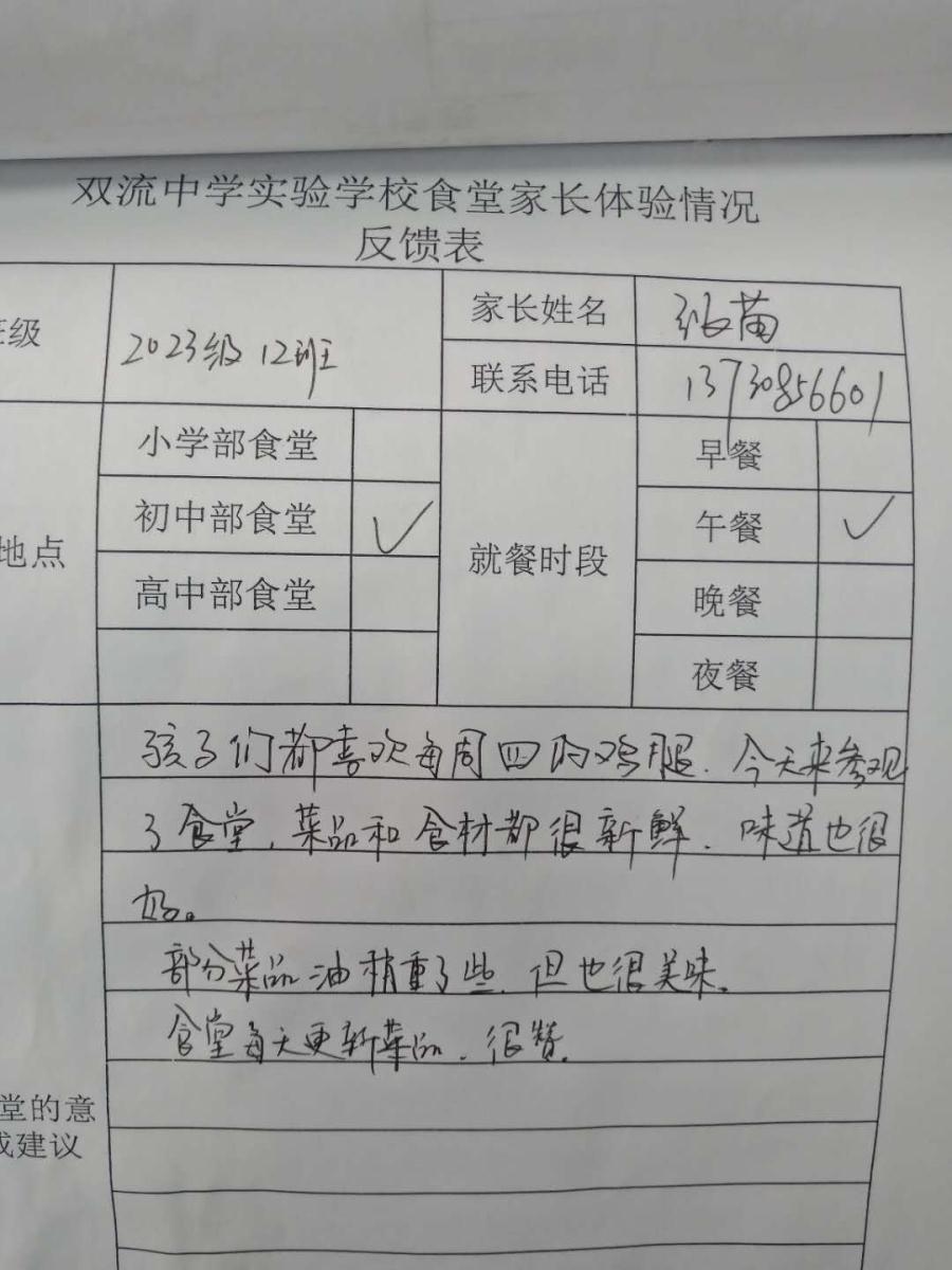 十、学生家长就餐体验后留言。