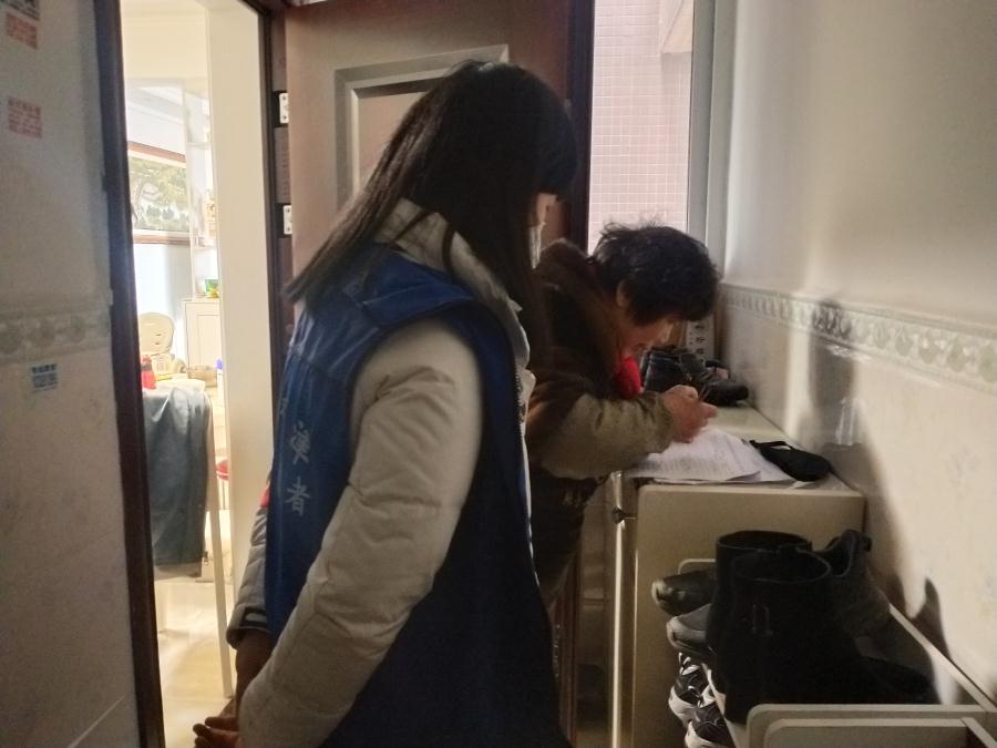 黄倩同学鼓起勇气又一次敲开门,耐心的解释,内心极度紧张,希望能够得到理解。终于,那位居民耐心配合,认真地填完了所有的信息,内心紧绷的弦也送了下来。这不由让人有一种莫名的成就感。面对了这第一次的挫折,就能更好地应对接下来的工作,面对不同的人群。