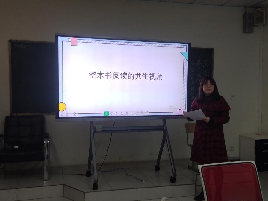这学期的工作室的各项工作和会议扎实有序地开展,前半学期工作室有精彩纷呈的群诗教学课例、各抒己见的评课议课活动和杨导师的精彩专题发言——《骆驼祥子》整本书阅读。后半学期,工作室成员也呈现自己这一学期的研究成果,今天会议上,王老师针对江浙一带开展的整本书阅读活动做了专题发言,发言的主题是“整本书阅读的共生视角”。